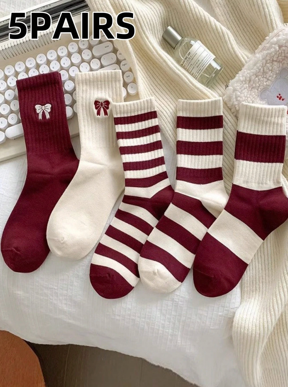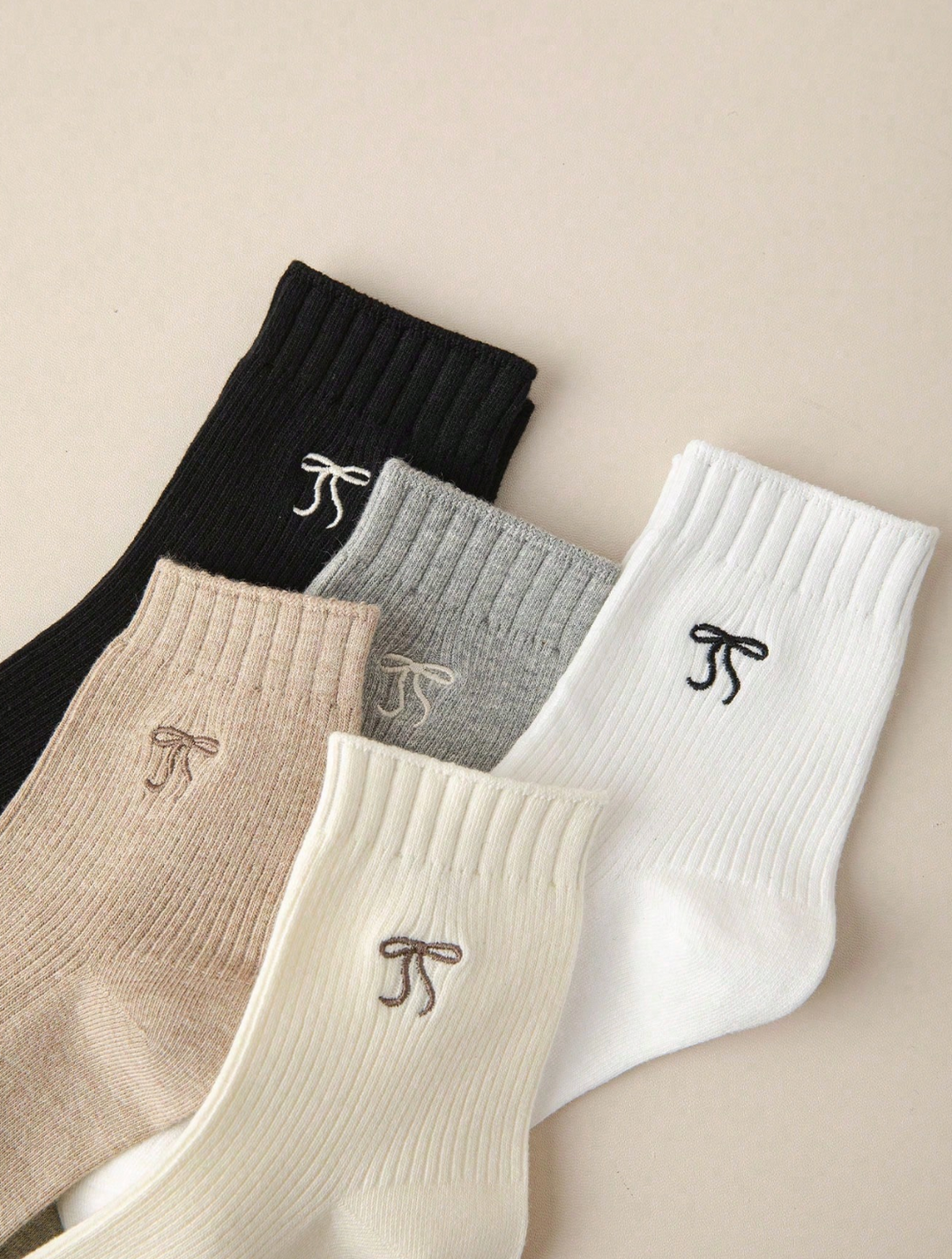 Lot de 5 paires de chaussettes minimalistes à nœud brodé