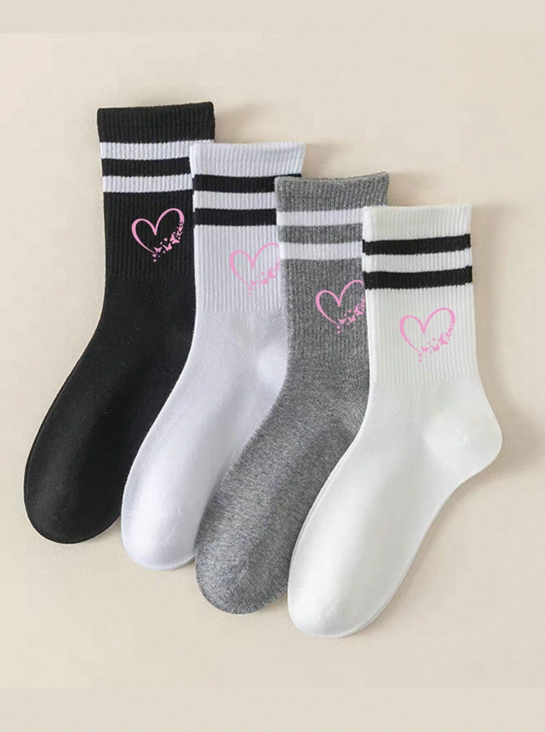 Lot de 3 paires de chaussettes sportives à motif cœur