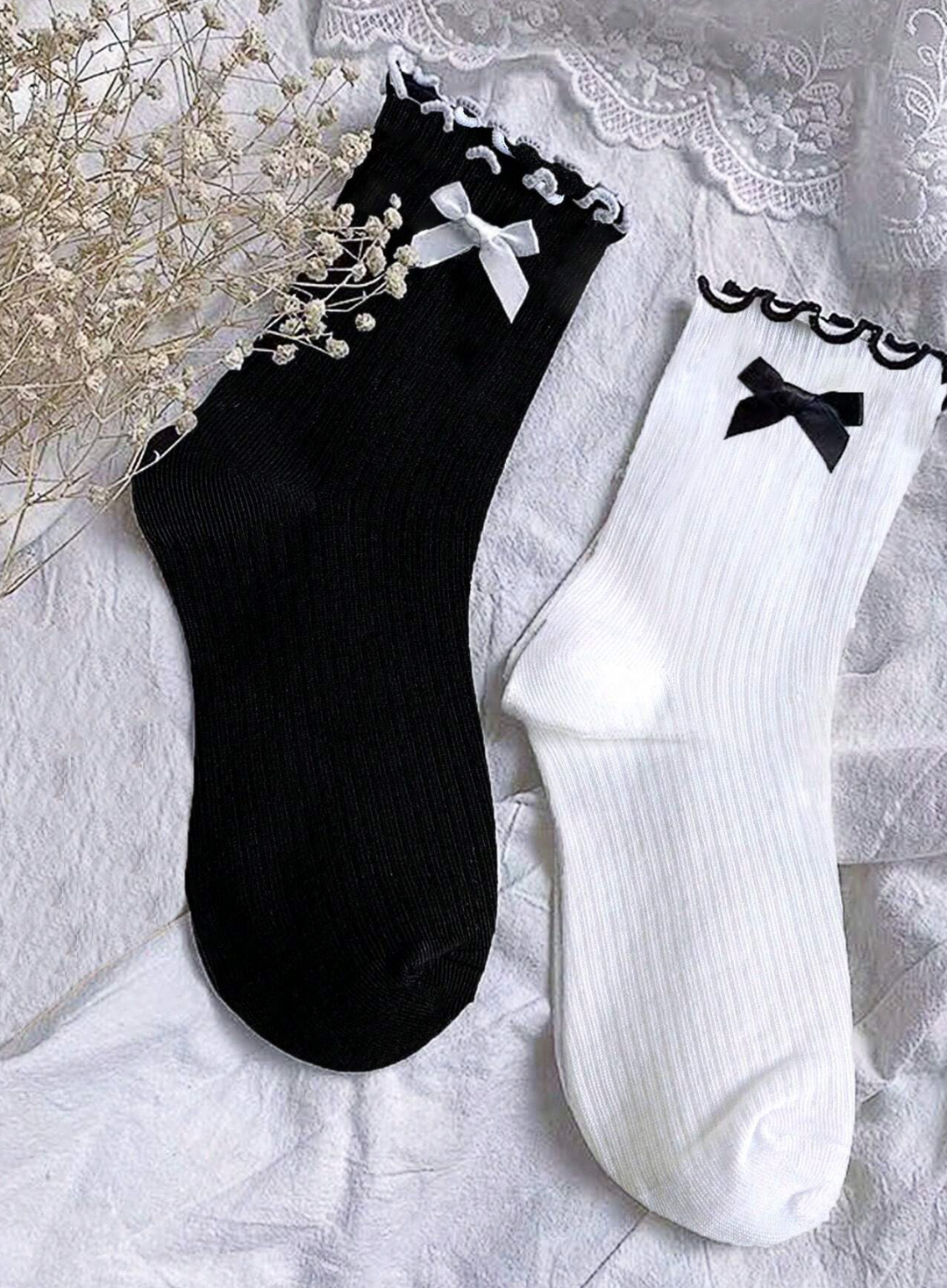 Lot de chaussettes féminines à nœud et dentelle