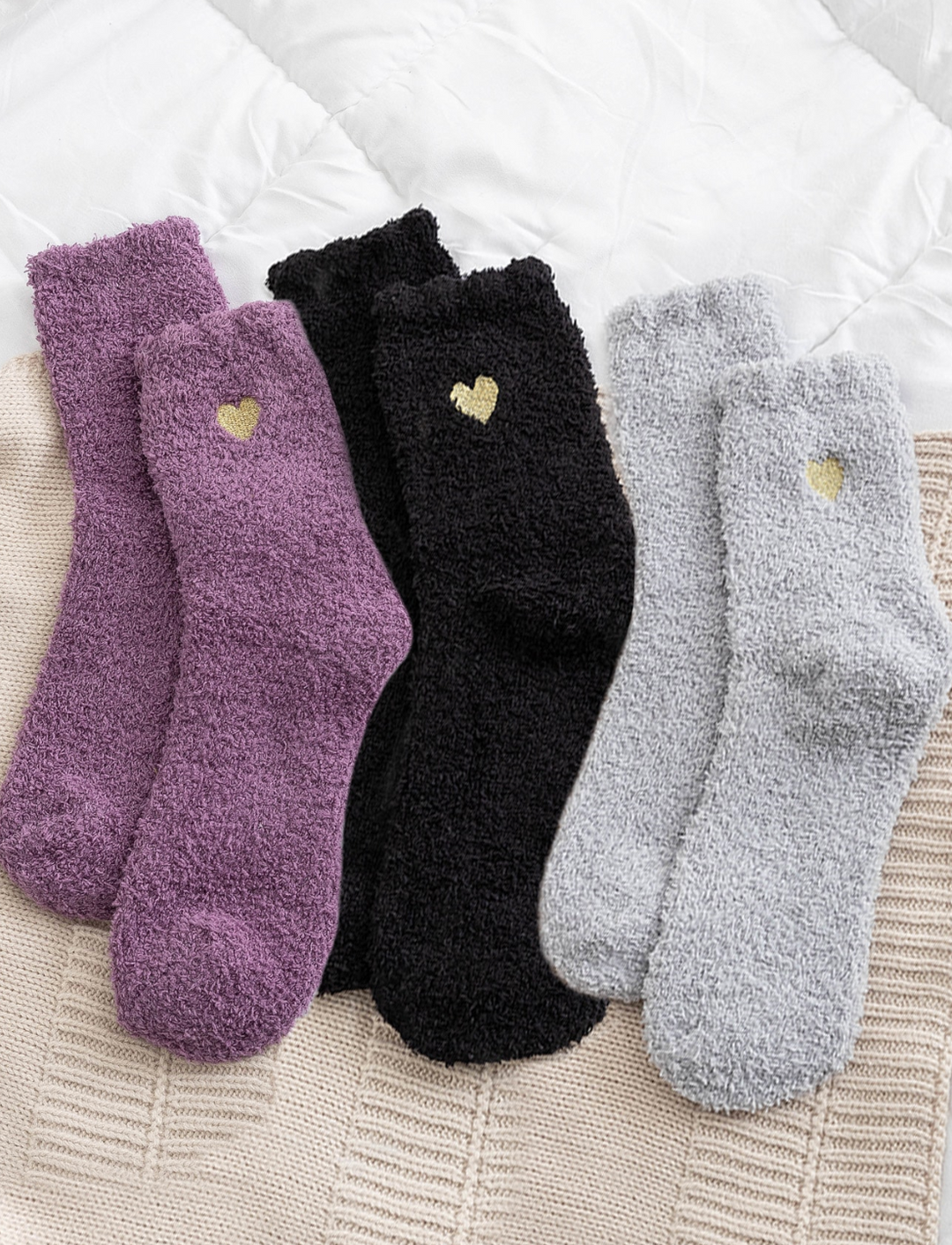 Chaussettes douces à cœur doré – Lot de 3 paires