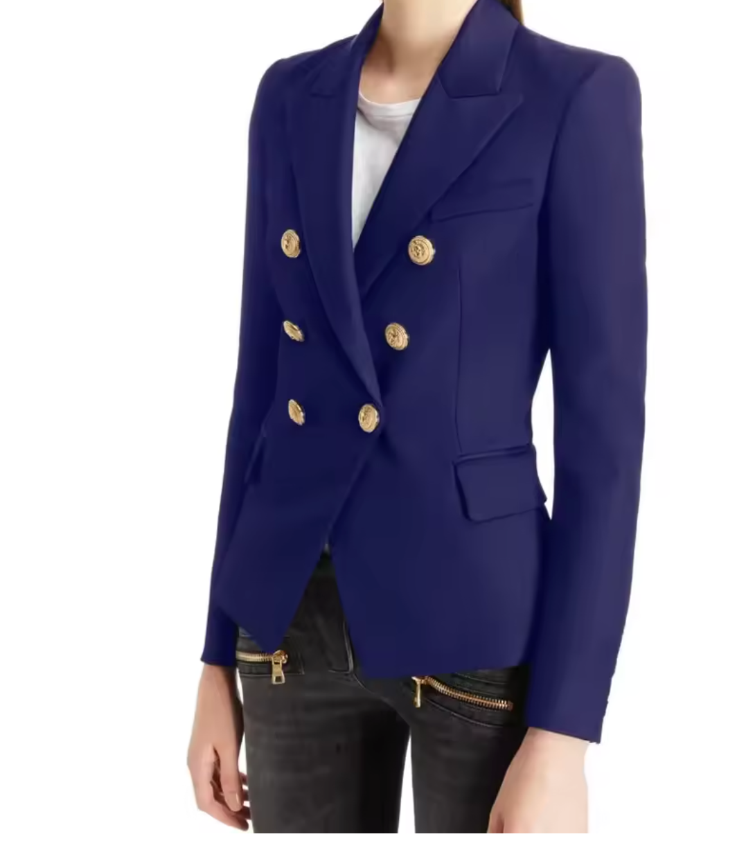 Ce blazer croisé à boutons dorés dégage une élégance intemporelle et une allure affirmée. Sa coupe structurée met en valeur la silhouette tout en apportant une touche sophistiquée à votre tenue. Confectionné dans un tissu de qualité, il est à la fois chic et confortable à porter toute la journée. Les boutons dorés ajoutent une finition luxueuse qui ne passe pas inaperçue.