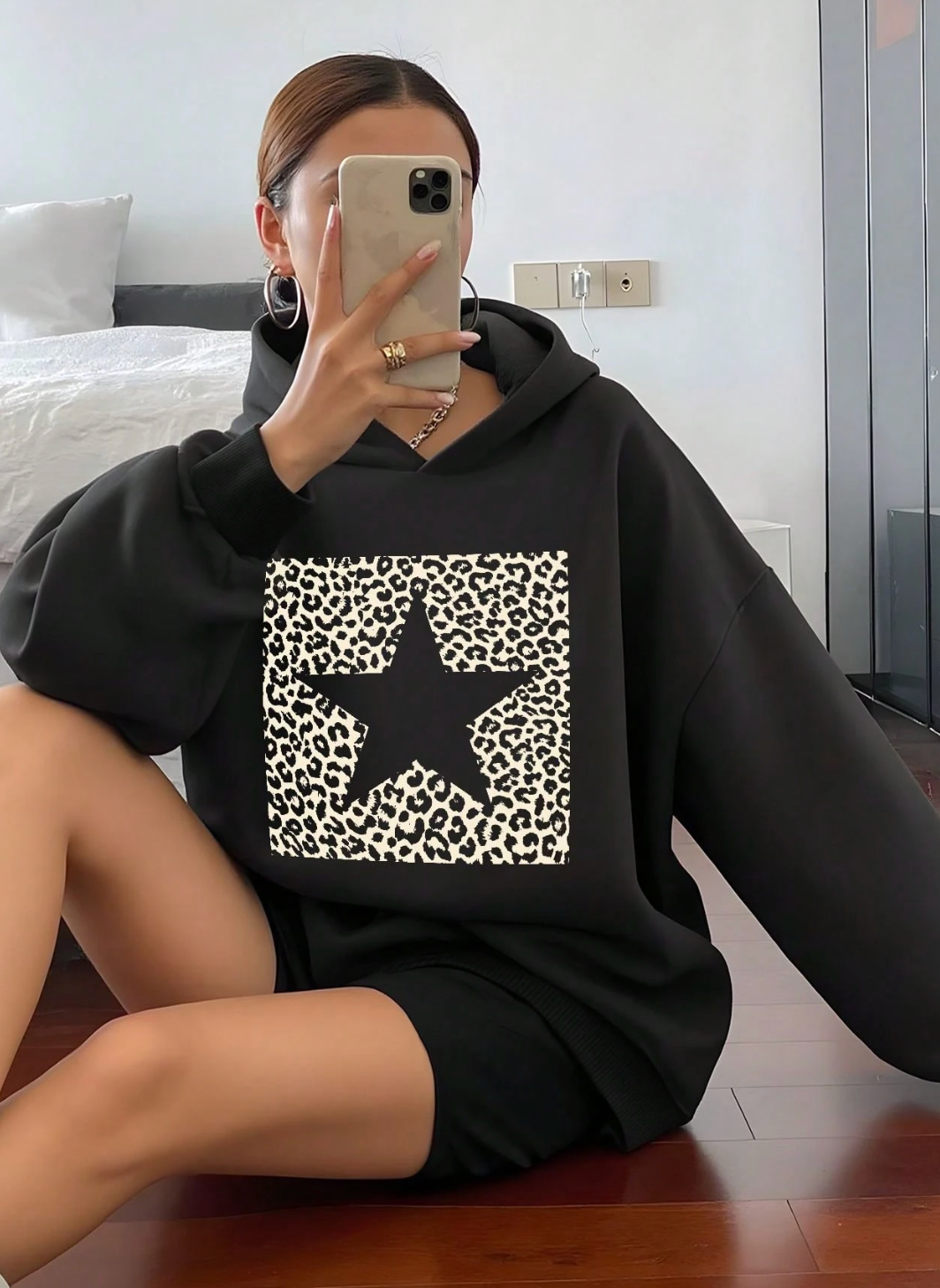 Sweat à capuche “Angel” à étoiles imprimées léopard
