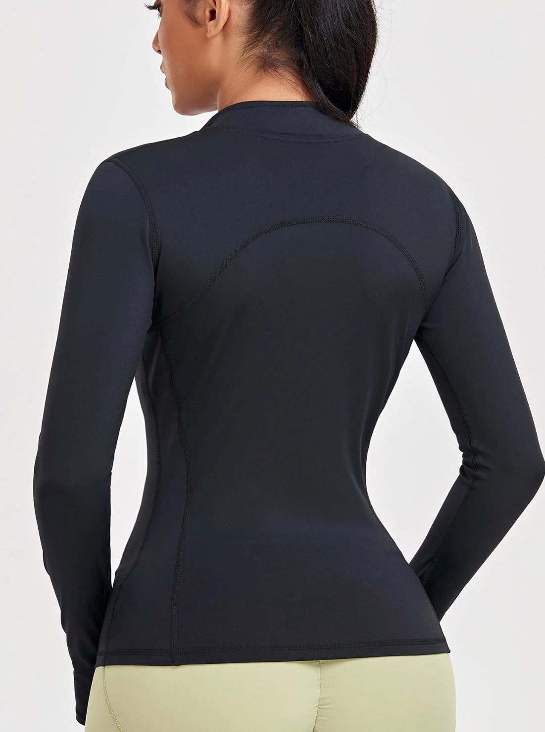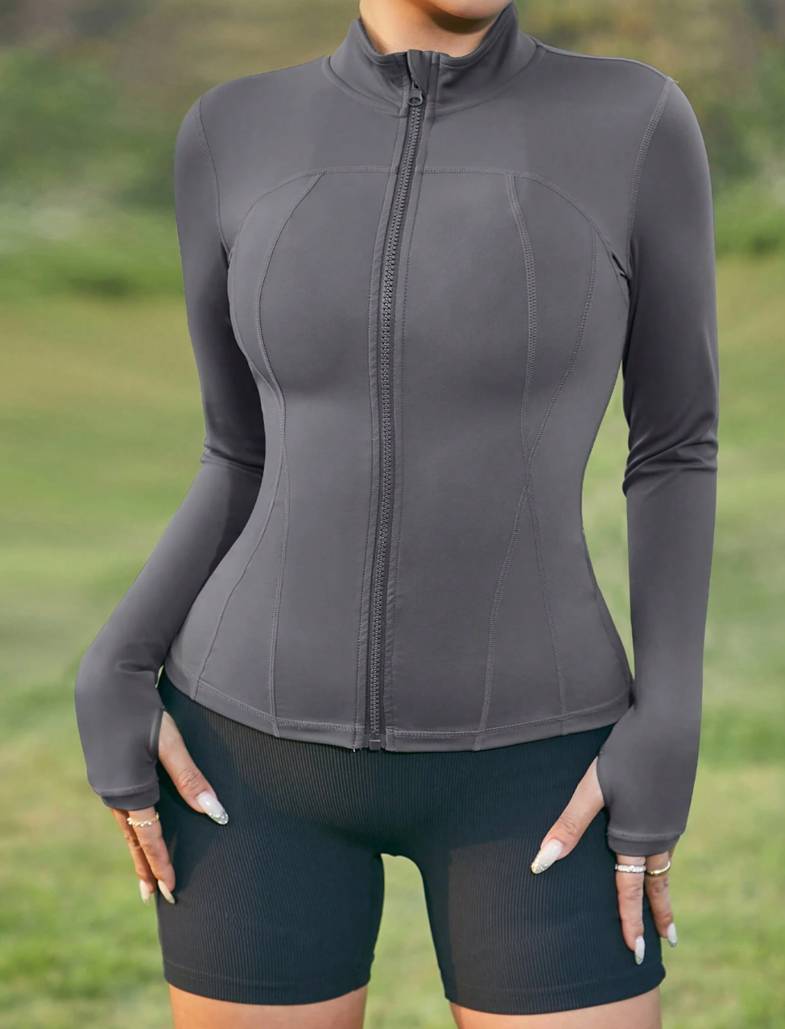 Cette veste de sport à manches longues allie performance et élégance. Son tissu extensible épouse parfaitement la silhouette, offrant un maintien confortable et une liberté totale de mouvement. Dotée d’une fermeture éclair intégrale et de coutures sculptantes, elle met en valeur la taille tout en assurant un style athlétique raffiné. Parfaite pour vos séances d’entraînement ou vos sorties décontractées.